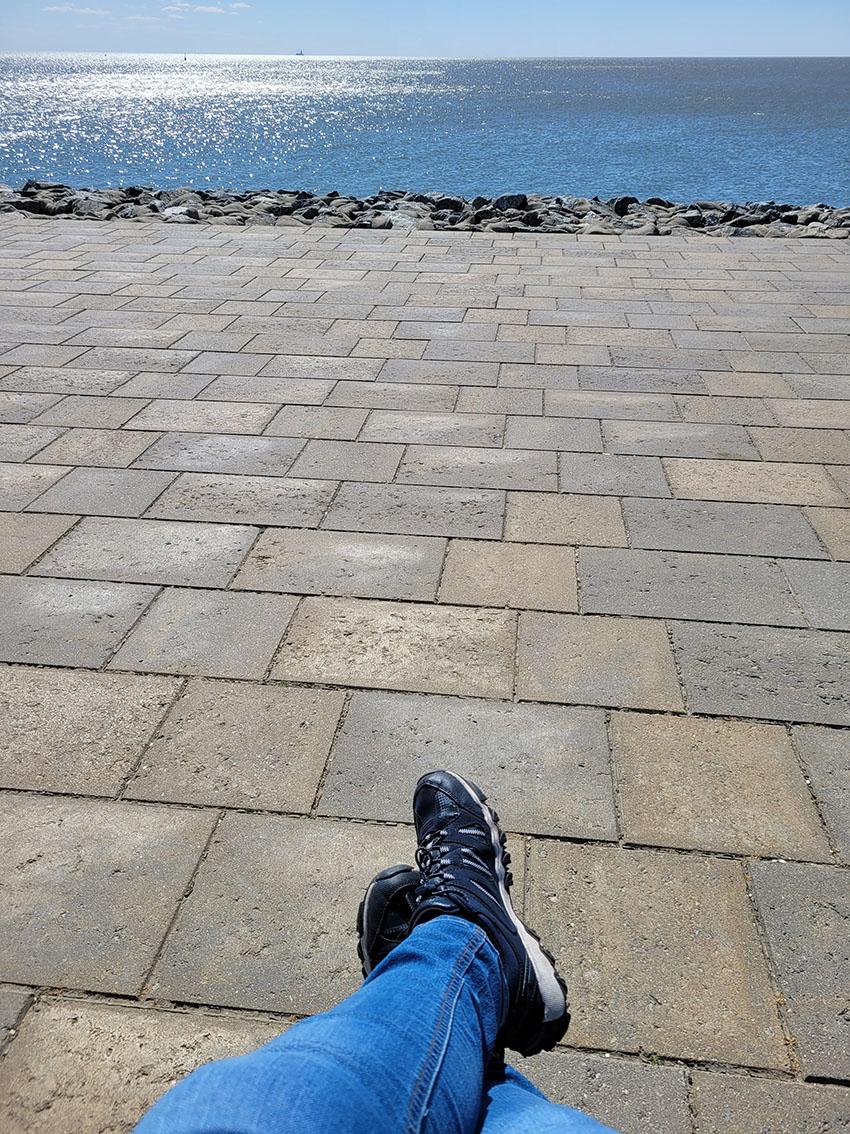 Also ging es los, den Hafen entlang mit den Kuttern, Werft und Fahrgastschiffen. Man konnte förmlich zusehen, wie Frau Wegener aufblühte, alles in sich aufsog, während es den Hafen entlang langsam Richtung Westmole ging. Dort angekommen nahmen sich unsere beiden Gäste viel Zeit, gemeinsam aufs Meer zu schauen, die Sonne und den frischen Wind zu genießen und für sich zu sein.