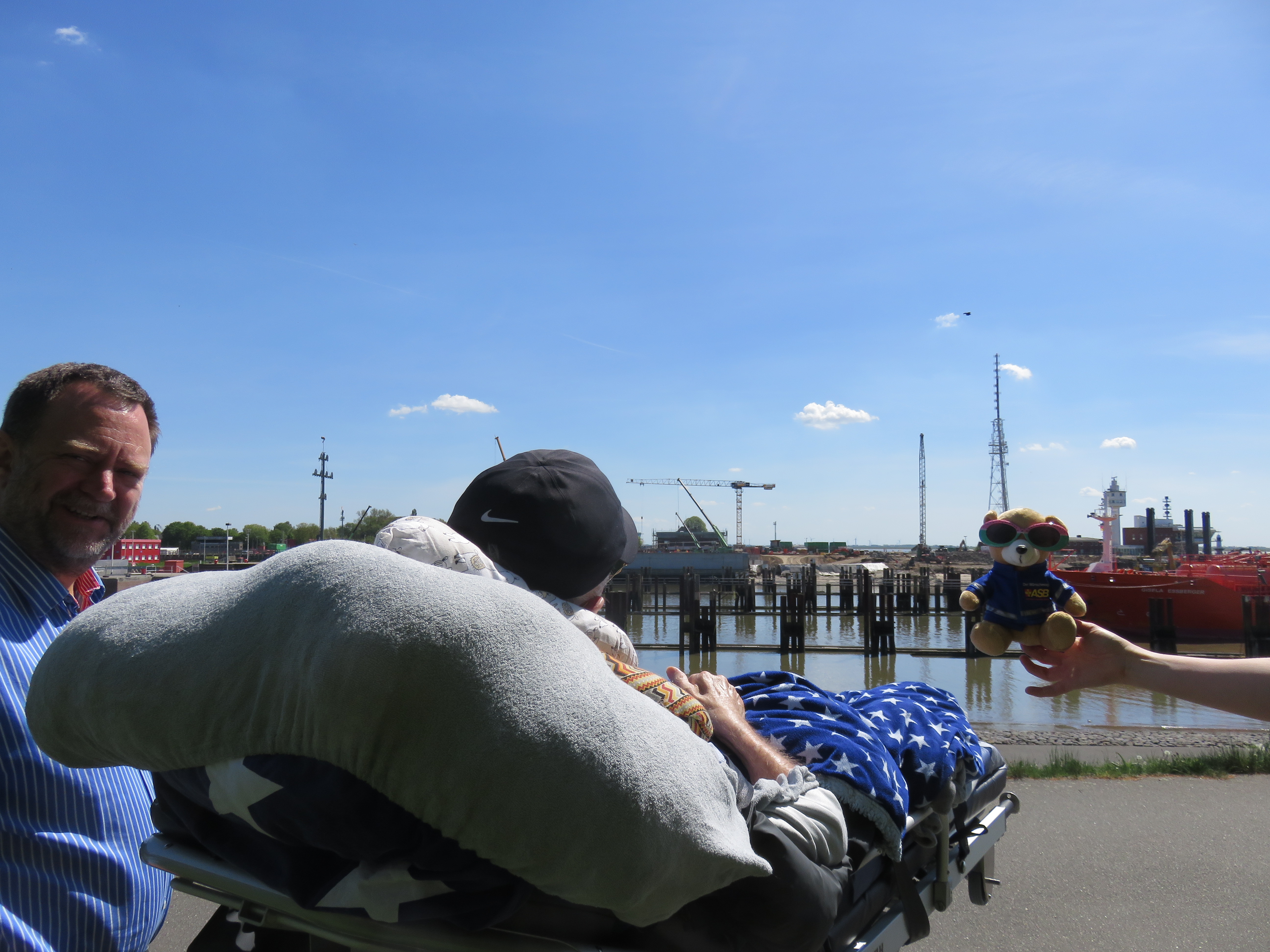 Die weitere Reise ging an die Schleusenanlage Brunsbüttel, die letzte Arbeitsstelle von Herrn N. Zwei große Frachter fuhren zu dem Zeitpunkt in die Schleuse hinein. Wieder lief eine Träne die Wange von Herrn N. herunter.