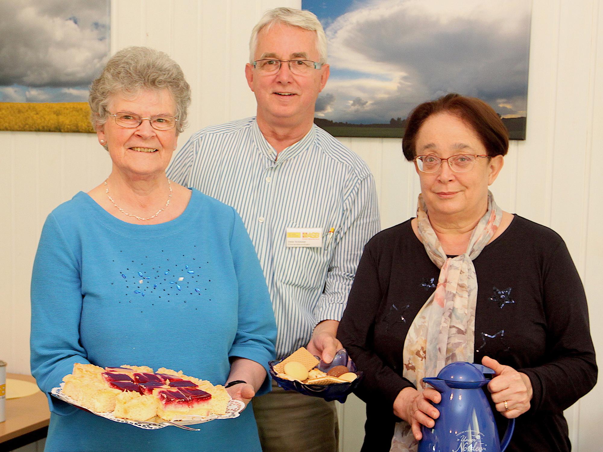 Für sich allein mag Dieter Schimmer, der selbst einen guten Teil der Arbeit fürs Klöncafé freiwillig leistet, diesen Erfolg aber nicht in Anspruch nehmen. Mit Tamara Wolf und Erika Mainz sind vielmehr zwei Ehrenamtliche an Bord, die alles dafür tun, dass sich die älteren Menschen wohlfühlen im Klöncafé.Das beginnt beim liebevoll dekorierten Tisch und geht bis hin zu vielen kleinen Aufmerksamkeiten, die den Älteren zuteilwerden, ohne dass sie sich groß äußern müssen. Mithelfen, das ist für die beiden Frauen, die selbst Rentnerinnen sind, eine Form, das Alter zu ehren. Und außerdem, so betonen sie, macht es einfach Spaß. Zumal das Trio vom Klöncafé super funktioniert. Die Frauen kochen Kaffee und gestalten die Tafel, der Mann organisiert den Kuchen und schleppt die Wasserkiste.